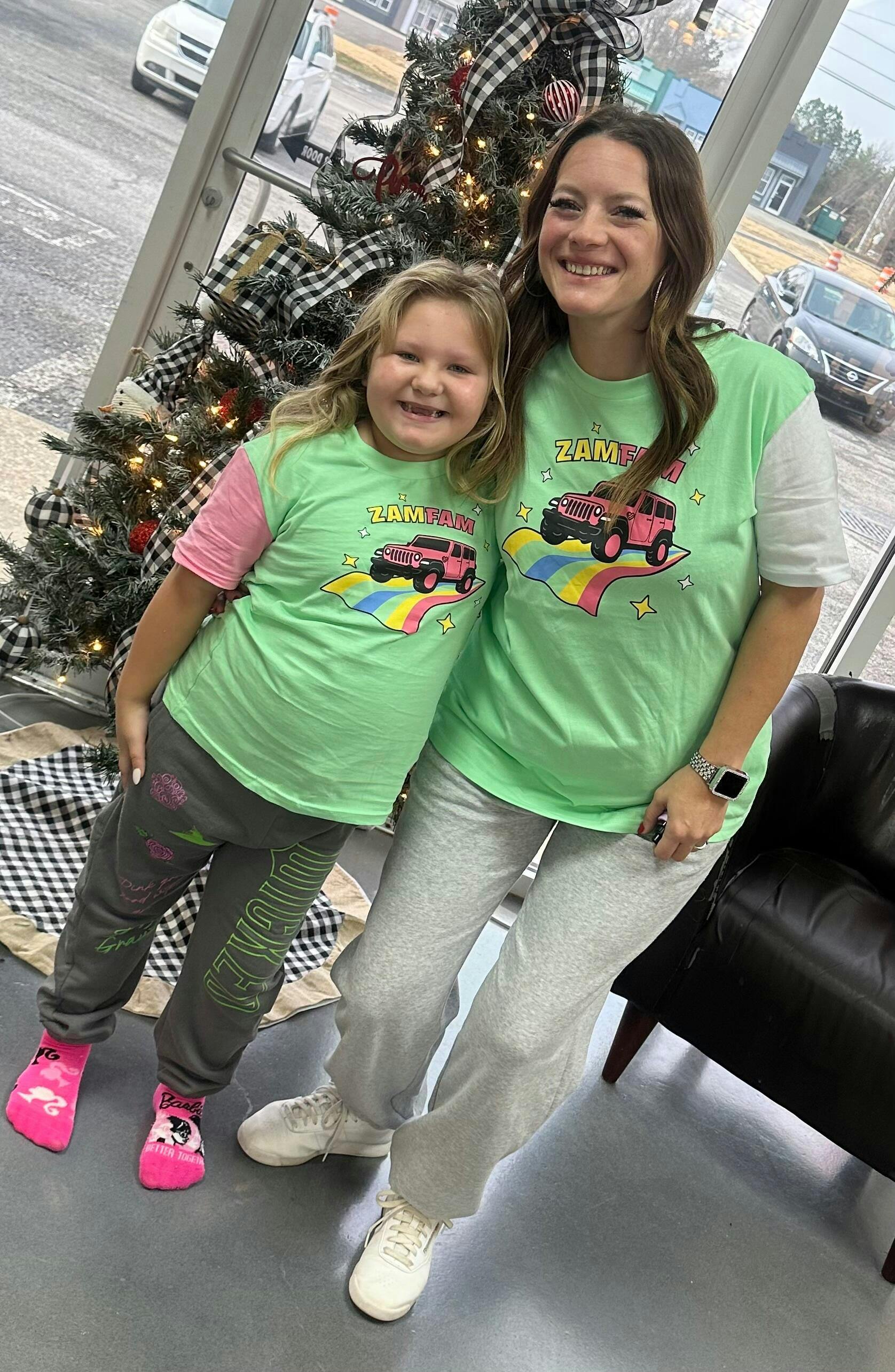 Whether you opt for the vibrant pink or the classic teal, the #Zamfam T-Shirt is your must-have for blending style with comfort!